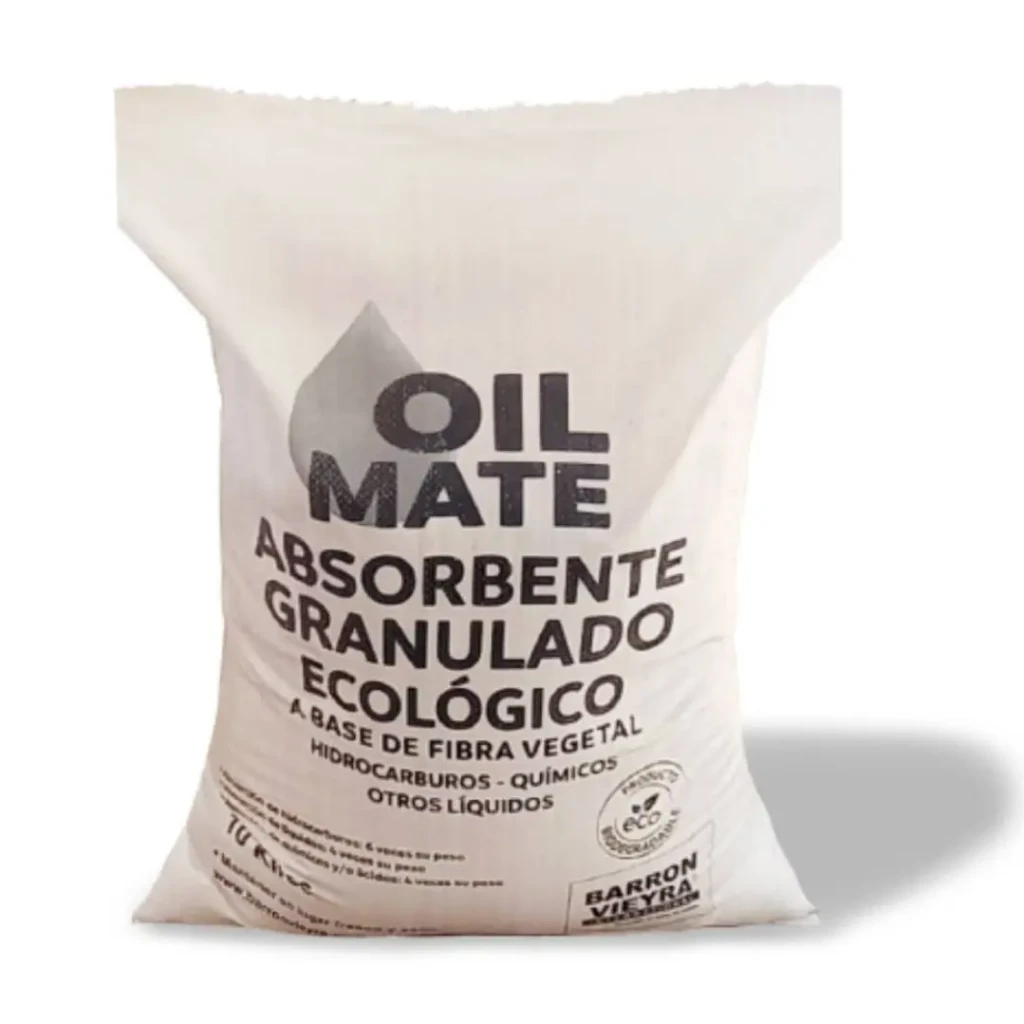 El absorbente granulado ecológico OIL MATE esta hecho en base a fibras vegetales sometidas a un proceso de secado, harneado y limpieza con aire, logrando una excelente herramienta para la absorción y contención de líquidos, aceites, hidrocarburos y ácidos, ya sea en el uso para control de derrames accidentales o en el manejo de RILES, debido a la homogeneidad del producto y a su bajo contenido de humedad. Tiene una capacidad de absorción superior a aserrines y arcillas por lo que se utiliza menos producto
