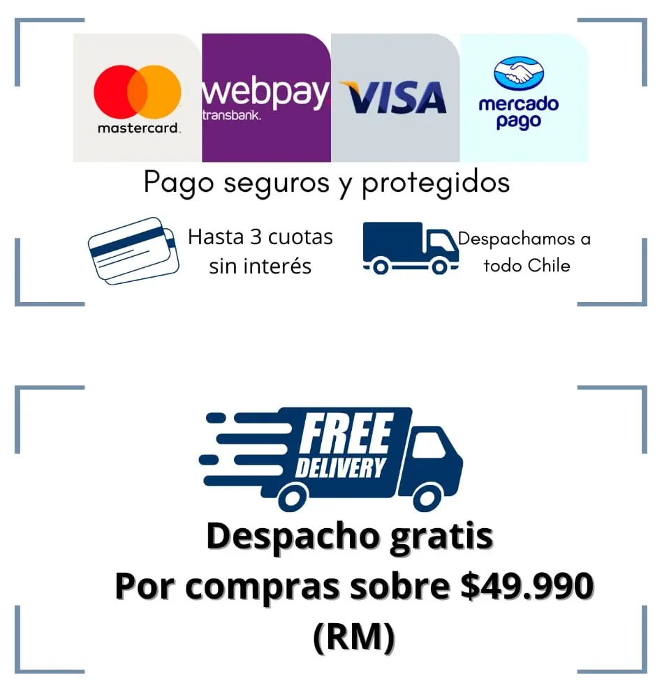 - Stock en Chile para despacho rápido a Región Metropolitana y regiones.