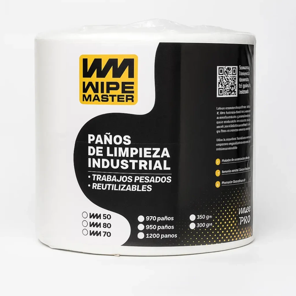 El paño absorbente biodegradable Wipemaster 70 Blanco, es un paño de tela no tejida absorbente, compuesto por 70% de celulosa y 30% polipropileno.